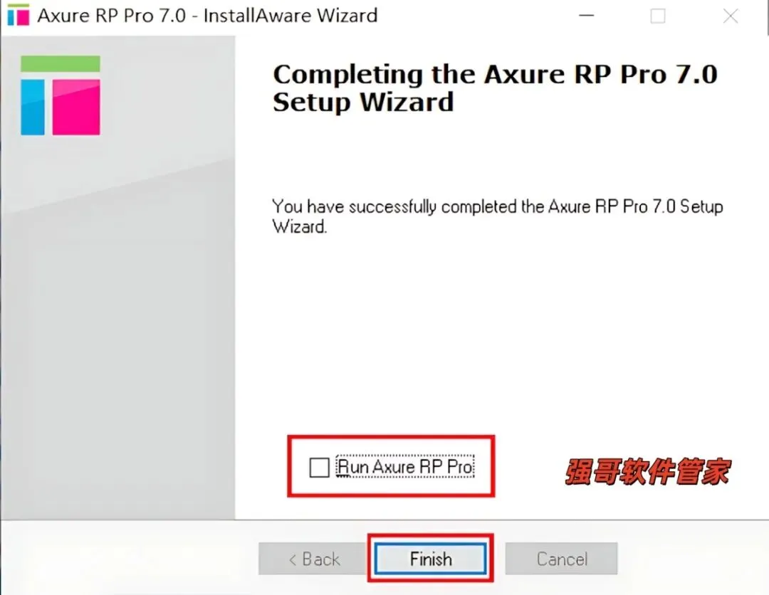 9.取消勾选【Run Axure RP】,点击【Finish】