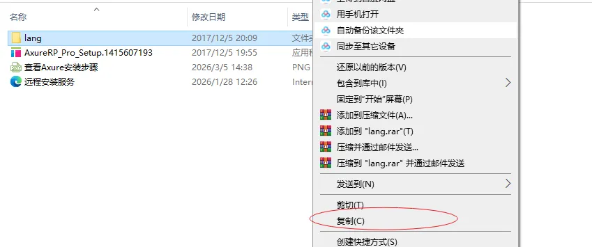 10.打开安装包文件夹,鼠标右击【lang】选择【复制】