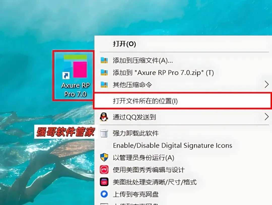 11.鼠标右击桌面【Axure RP7.0】选择【打开文件所在位置】