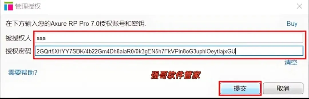 15.输入被授权人【aaa】,输入授权密码【2GQrt5XHYY7SBK/4b22Gm4Dh8alaR0/0k3gEN5h7FkVPIn8oG3uphlOeytIajxGU】,点击【提交】