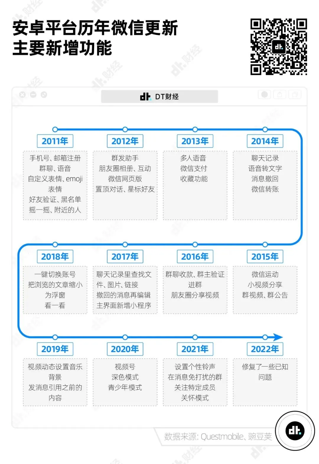 我们整理了11年间微信主要新增功能: