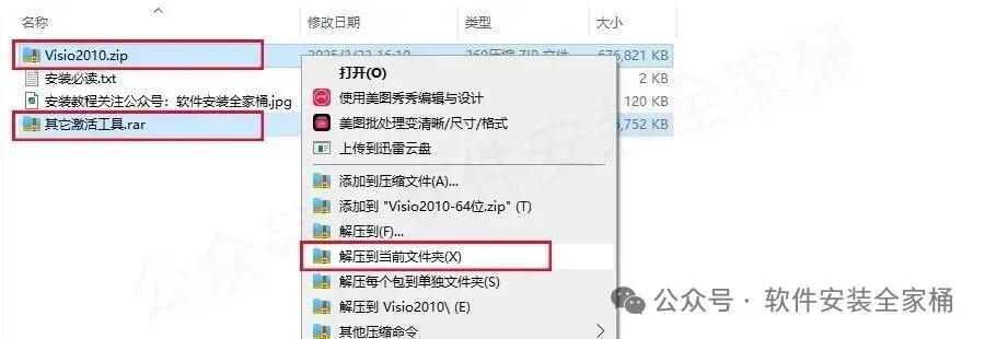 1..打开下载好的软件安装包,鼠标右击压缩包选择【解压到当前文件夹】。