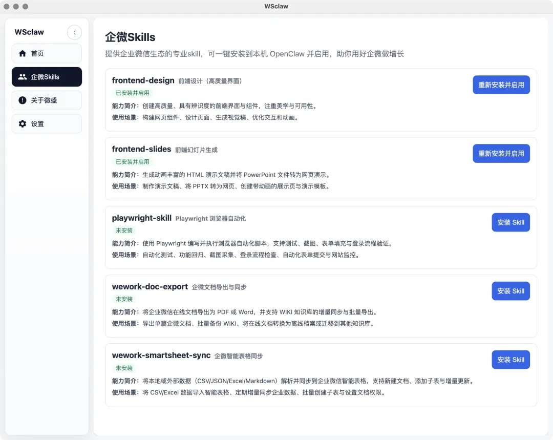 内置的部分企微skill如下👇