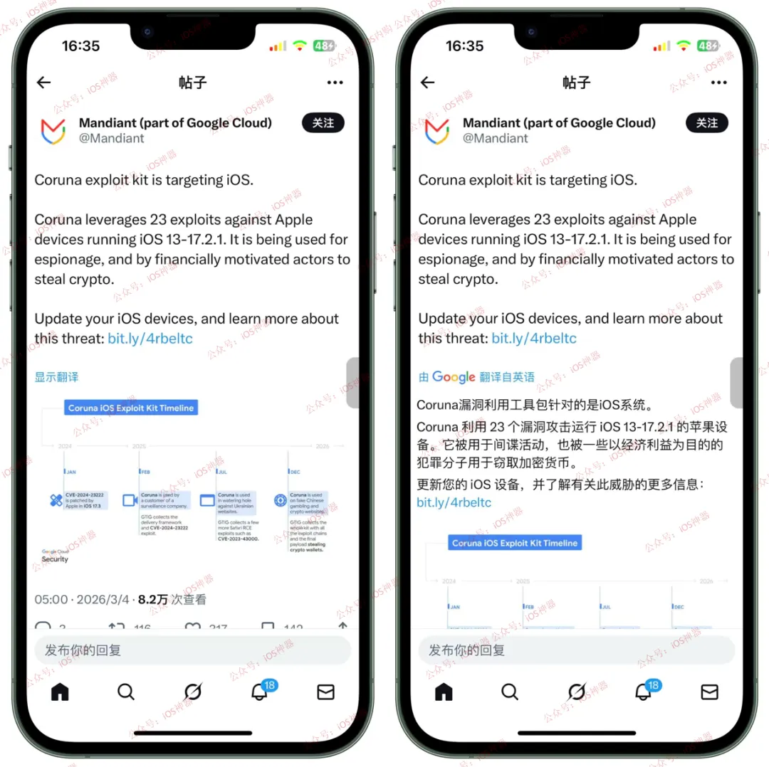 报告原文链接:https://cloud.google.com/blog/topics/threat-intelligence/coruna-powerful-ios-exploit-kit?linkId=59478481