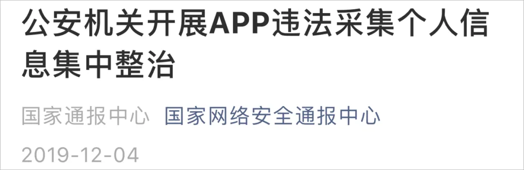 2019年11月以来,公安部加大打击整治侵犯公民个人信息违法犯罪力度,组织开展APP违法违规采集个人信息集中整治,深入推进由中央网信办、工业和信息化部、公安部、市场监管总局联合开展的APP违法违规采集使用个人信息专项整治行动。
