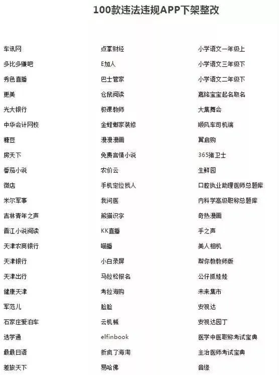 下架整改100款违法违规APP