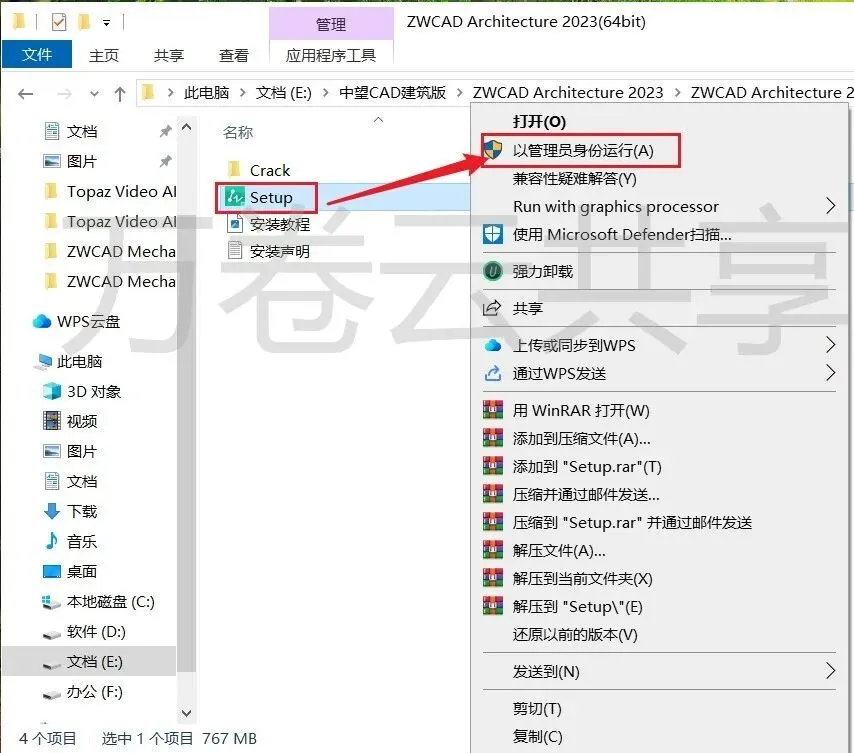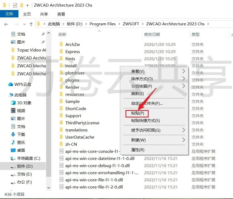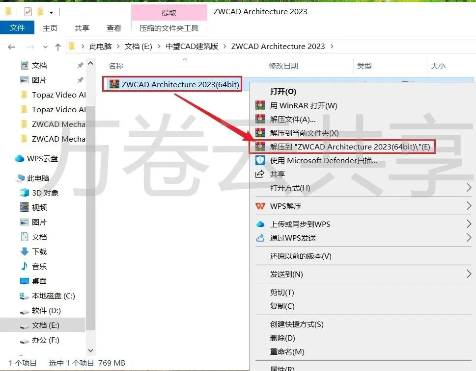 1.鼠标右击现在后的压缩包,选择→解压到ZWCAD Architecture 2023(64bit)