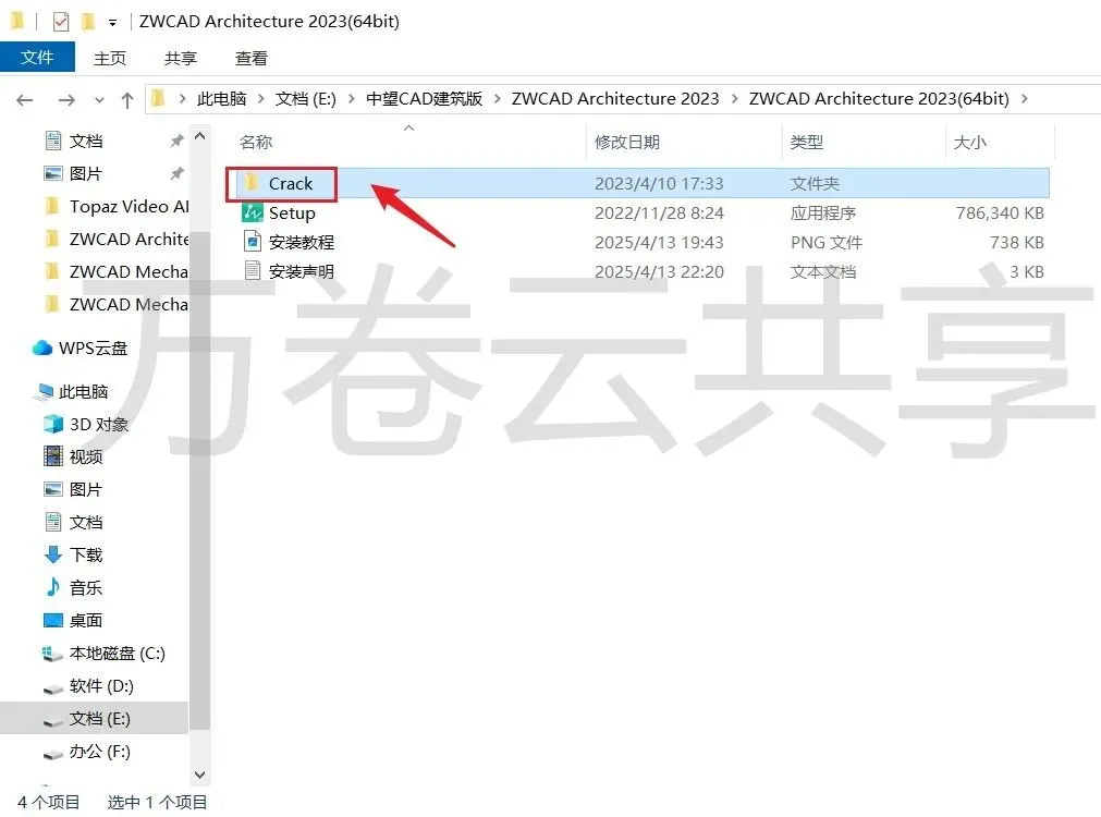 7.打开安装包解压后的ZWCAD Architecture 2023(64bit)文件夹,双击打开→Crack文件夹