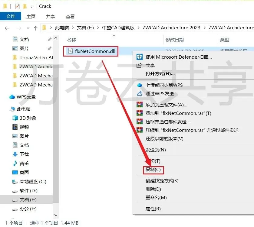 8.鼠标右击→flxNetCommon.dll,选择→复制