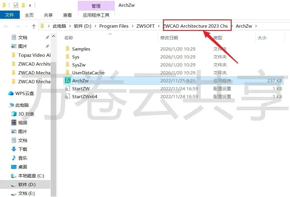 10.点击→点击路径地址栏中的ZWCAD Architecture 2023 Chs
