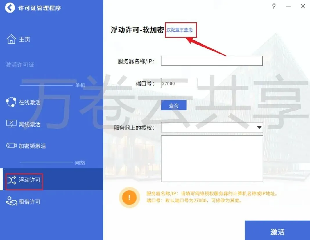 16.点击→浮动许可,点击→仅配置不查询