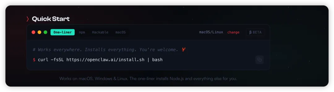curl -fsSL https://openclaw.ai/install.sh | bash