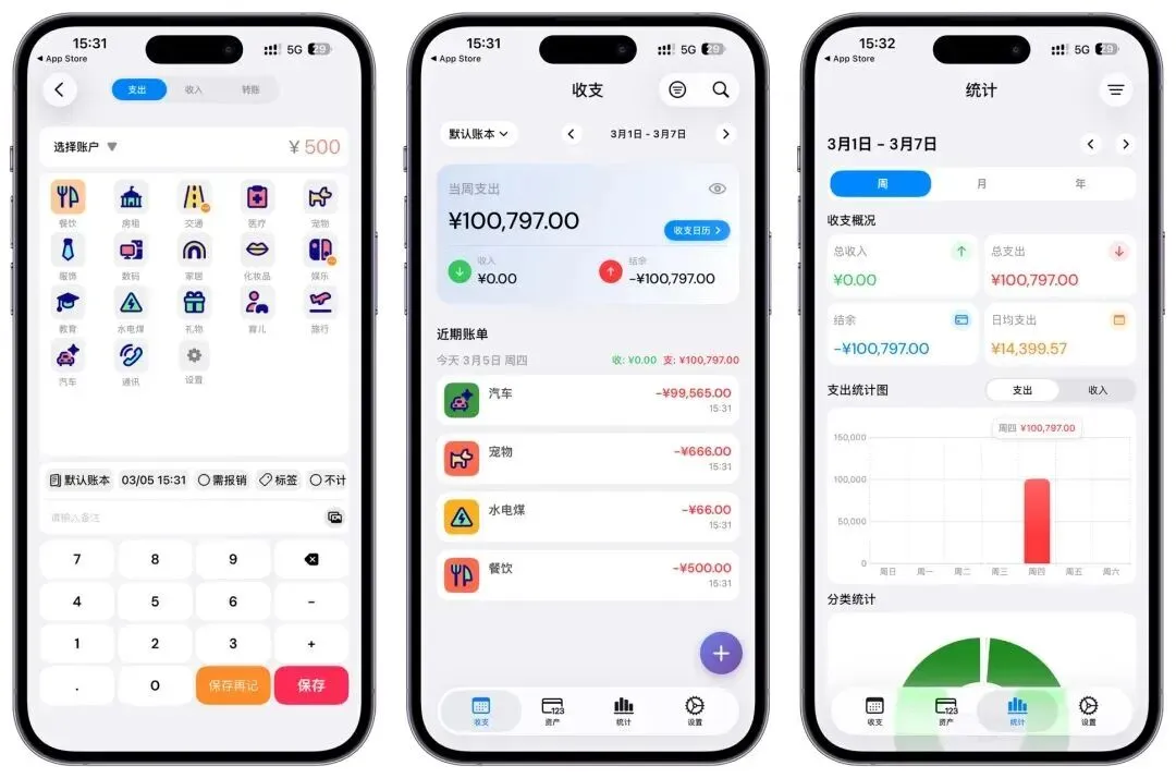 2.自动生成周/月/年收支分析图,直观展示消费趋势,助您优化开销。
