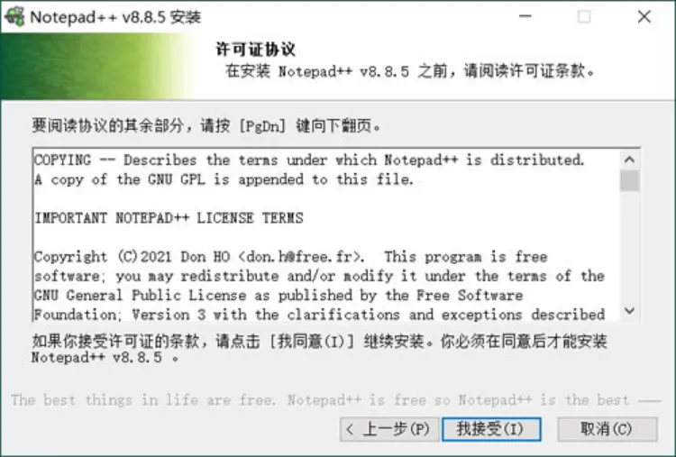 1) 下载名为 npp.8.8.5.Installer.exe 的安装包,双击启动,默认就是简体中文,直接点击 OK: