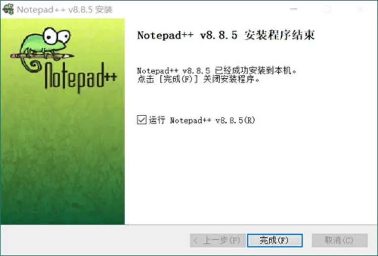8) 出现下图界面,点击完成,Notepad++ 就安装完了: