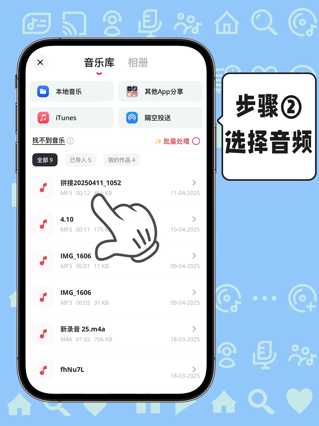 ② 从语音备忘录中导入录音