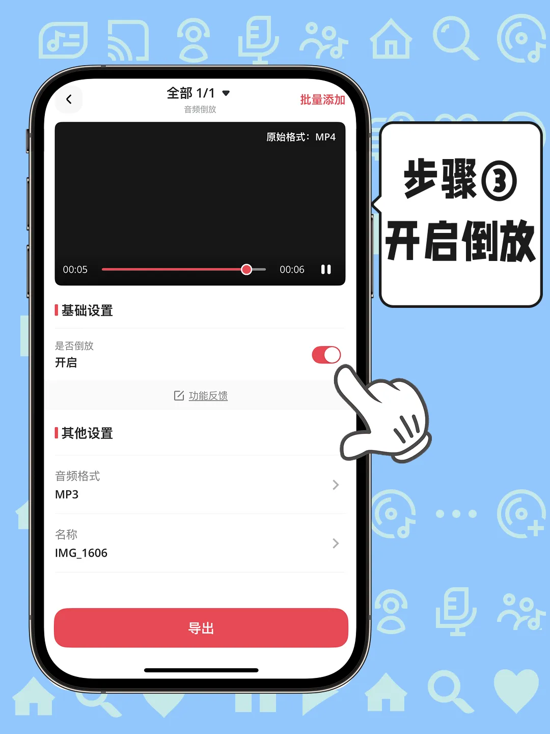① 打开格式猫 → 进入“音频倒放”;