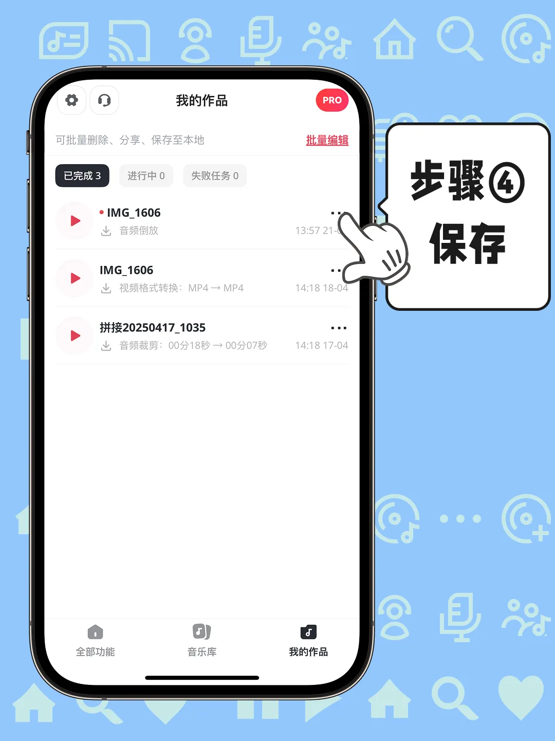 ③ 语音倒放挑战游戏即刻开始!保存到手机中,在“文件”中查看。