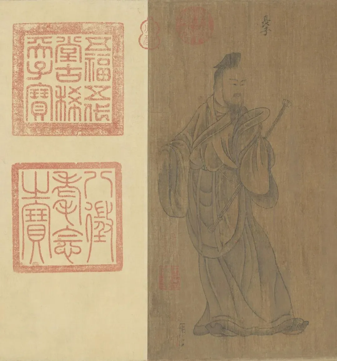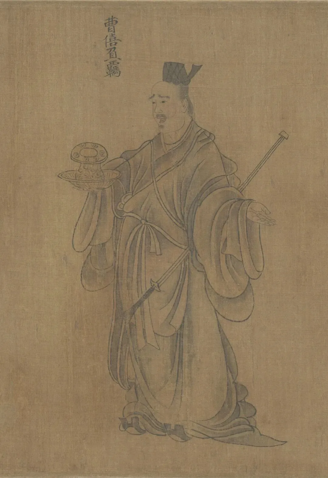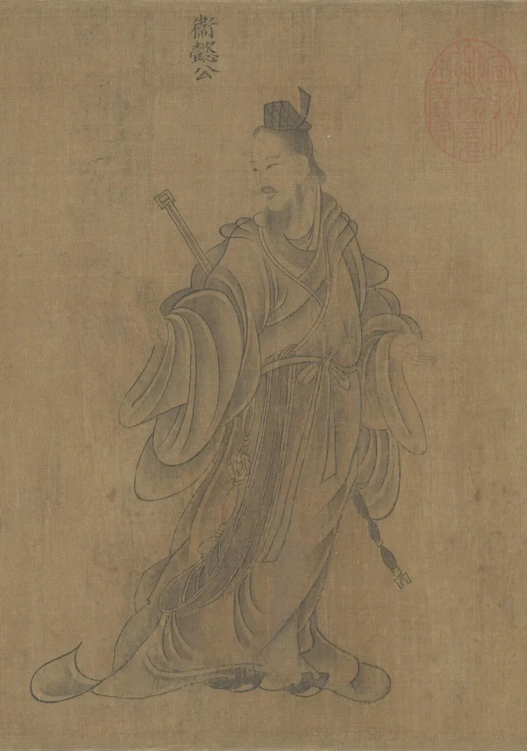 此卷多处保存了汉代的衣冠制度,如男子头戴进贤冠,身着曲线大袖袍,腰结绶带并配挂长剑;女子梳着垂髾髻,身着深衣,特别是眉毛涂以朱色,是模仿赵昭仪的新妆,这些都表现了特定时期的风俗和时尚。又蘧伯玉所乘坐的马车称 “轺车”,亦为汉代形制,描绘得非常细致而无错误,这些都可以从大量出土的汉代画像石、砖和壁画中找到与之相应的图象。此为宋人摹本,绢本墨笔淡着色,旧传东晋顾恺作。该画是清宫旧藏,经《庚子销夏记》、《石渠宝笈初编》等书著录。后由溥仪携出,旋入长春伪宫,1953年连同已佚散的历代名贵书画百余件回到故宫博物院。