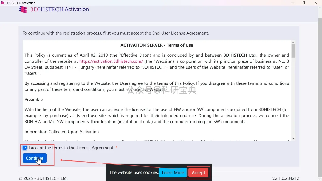 7、首先选择【Accept】,再勾选【I accept……】,并点击【Continue】;