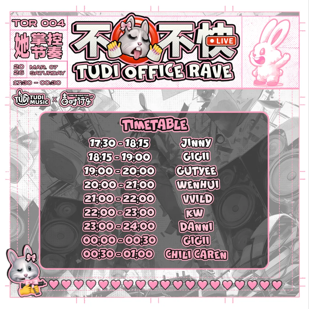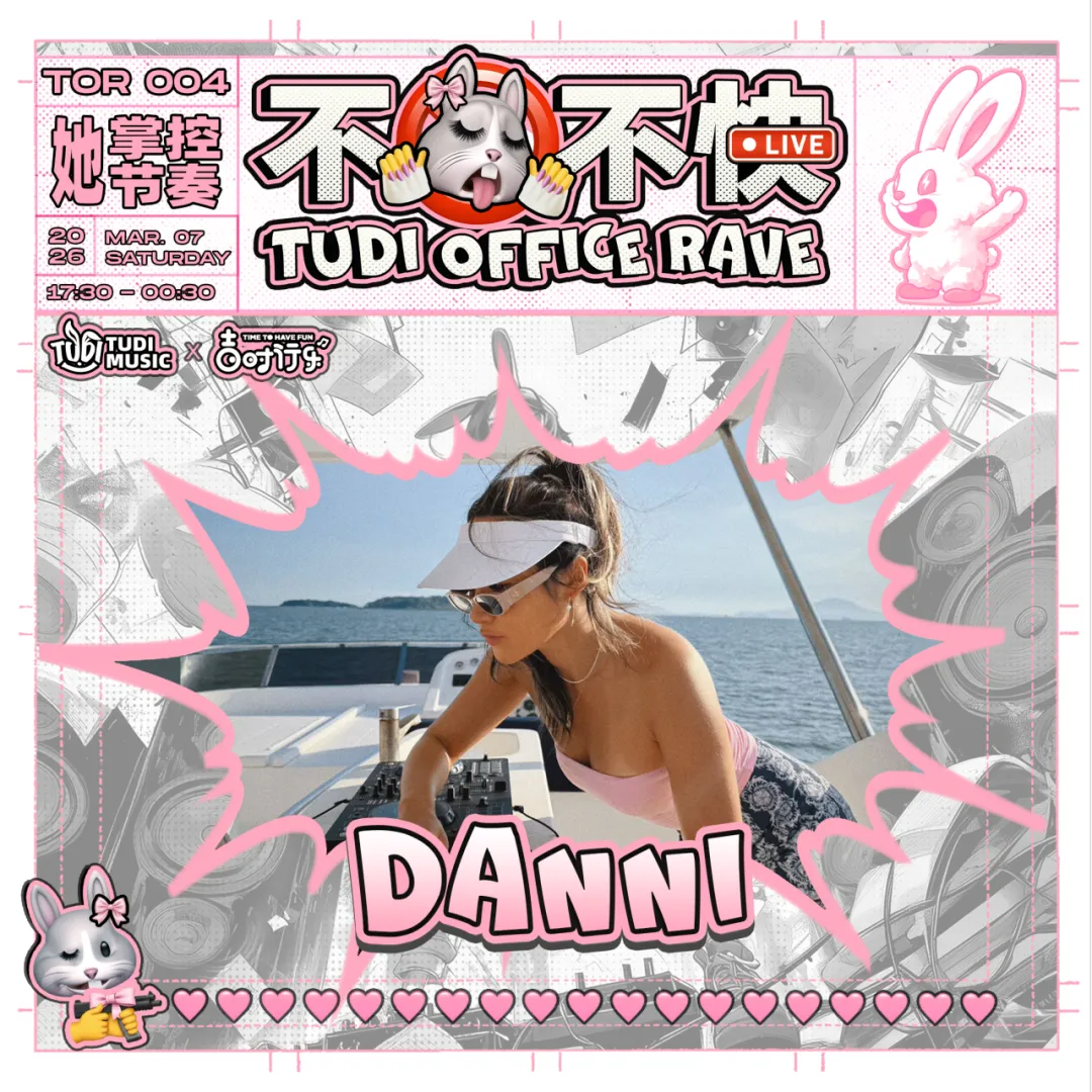 她偏爱充满能量的音乐。常活跃于地下俱乐部、户外场景、艺术展览等多元化场景,为她所在的空间注入巨大的能量。她策划的实验性艺术活动落地全球各地,推动艺术与音乐的跨圈融合。