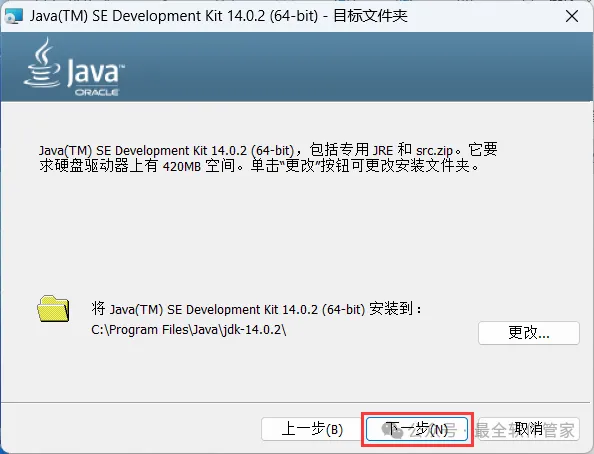 [不限速下载]:免费获取百度网盘不限速下载工具。公众号内回复:不限速[注意事项]:安装前请关闭网络、杀毒软件和防火墙,否则易安装失败。公众号内回复:1[解压软件]:小编用的解压软件是Bandizip,获取Bandizip软件安装包。公众号内回复:21、下载JDK 14软件安装包到电脑上,右键选择【解压到JDK 14\】3、找到【jdk-14…x64】应用程序,右键选择【以管理员身份运行】它8、回到桌面,右键桌面上的【此电脑图标】,点击【属性】 12、变量名输入:JAVA_HOME;变量值输入:C:\Program Files\Java\jdk-14.0.2,再点击【确定】13、在系统变量一栏,找到【Path】,选中它,再点击【编辑】 15、内容输入:% JAVA_HOME%\bin,再点击【确定】 17、内容输入:% JAVA_HOME%\jre\bin,再点击【确定】 20、回到桌面,按下快捷键【WIN图标+R】,输入【cmd】,再点击【确定】 21、输入:java -version,按下键盘上的【Enter】回车键,查看JDK版本号22、输入:java,,按下键盘上的【Enter】回车键,得到下列反馈 23、输入:javac,,按下键盘上的【Enter】回车键,得到下列反馈,则JDK安装及配置成功24、以上就是JDK 14软件安装的全过程,要是对你有帮助的话,请为小编点个赞!免责声明:软件资源均来源于网络,仅供用户交流学习与研究使用,版权归属原版权方所有,版权争议与本公众号无关,用户本人下载后不能用作商业或非法用途,否则后果均由用户承担责任;如果您访问和下载此文件,表示您同意只将此软件用于参考、学习而非其他用途,否则一切后果请您自行承担,请于下载后24小时内删除,不允许用于商业用途,否则法律问题自行承担。如果您喜欢该软件,请支持正版软件,购买注册,得到更好的正版服务。