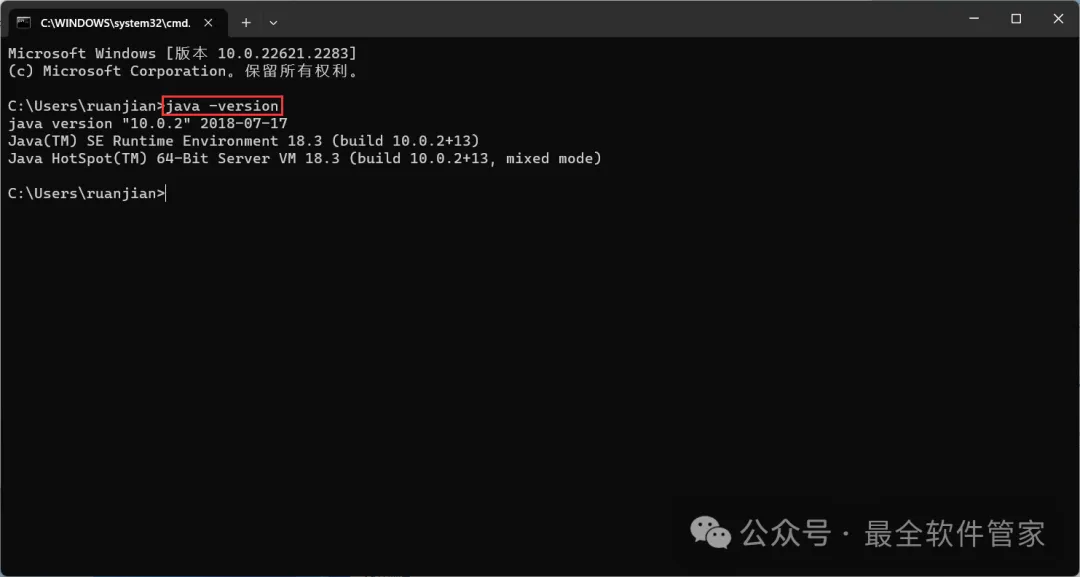 20、输入:java -version,按下键盘上的【Enter】回车键,查看JDK版本号