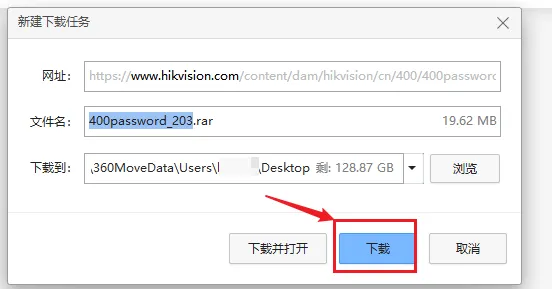 海康威视监控录像机密码重置软件下载及安装海康威视监控及录像机密码重置软件,推荐用【400密码重置助手】。打开浏览器,输入关键词【海康威视】,并按回车Enter键进行搜索,在展示的条目中,找到带【官方】字眼的链接,点击进入。或者直接在浏览器网址栏直接输入海康威视官网地址www.hikvision.com不管用哪个方式,进入官网后,点击最右侧的【放大镜】准备搜索在搜索框,输入关键词【400】,看到下面自动有提示【400密码重置助手】,点击一下进行搜索,见下图搜索到结果,再点击红色字体的【400密码重置助手】,出现下方界面,再点击,准备下载点击【软件名称:400密码重置助手】后,出现以下提示,点击【同意】点击【同意】后,出现新建下载任务窗口,选择要下载到的具体位置,本案例中选择的是电脑桌面,然后点下载。下载完成后,到对应位置找到400软件的压缩包,准备解压并安装软件。我们这边选的是电脑桌面位置,到桌面找到压缩包并解压到当前文件夹右击此软件,选择解压到400password_203,这样在电脑桌面就会出一个以400password_203命名的文件夹,见下图打开400password_203这个文件夹,看到里面有一个安装程序,右击,选择【以管理员身份运行】,见下图出现【选择目的地位置】窗口,根据个人操作习惯,选择安装软件的位置,本案例保持不动,则直接点【下一步】安装进度非常快,一下就好了,然后弹窗提示如下,默认是勾选了创建桌面快捷方式,直接点【下一步】