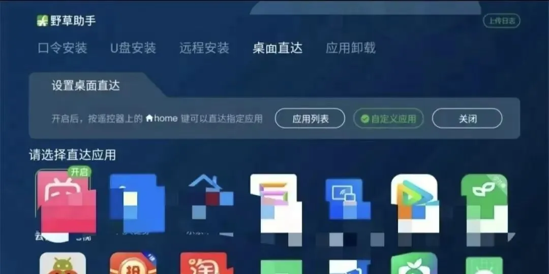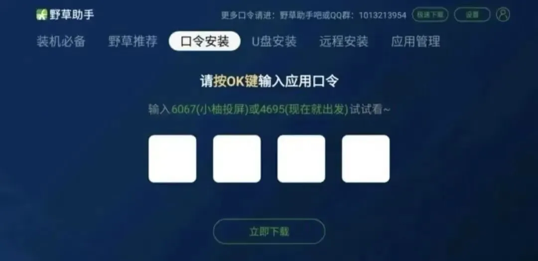 1、首先,在电视上安装野草助手,成功安装的界面如下: