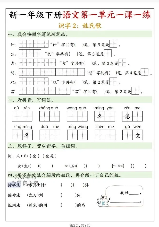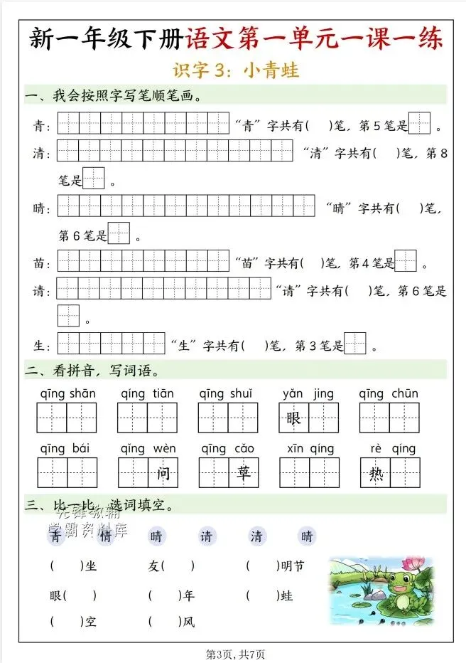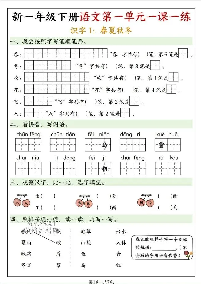 今天给大家整理了26春一年级下册语文第一单元一课一练《人教版》,转发给朋友或班级群,受益更多人,帮助孩子学习!