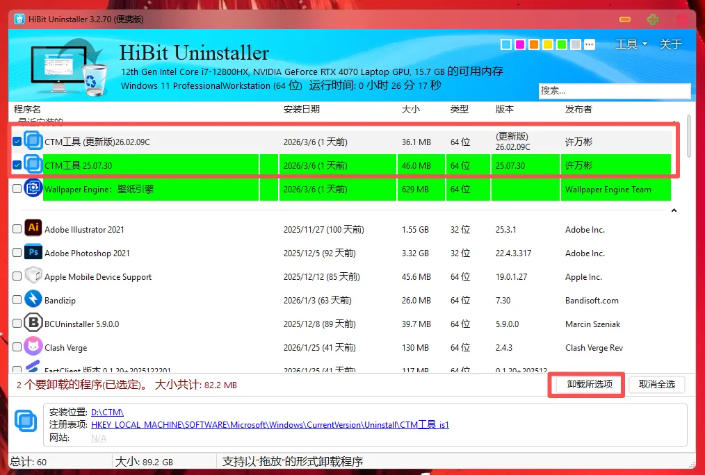 “CTM工具”卸载替换教学~有粉丝反馈。“CTM工具”忘本了,会强制更新。更新后会收费。666“CTM工具”我真ctm了。 废话少说,教程开始。打开我留在你们电脑上的卸载工具“HiBitUninstaller-Portable”,勾选全部 的“CTM工具”点击卸载。随后把“tb”文件夹里的“TranslucentTB-portable-x64”解压出来,剪切到一个你能找到的位置,最好是除开C盘以外的盘。打开解压后的文件,右键“TranslucentTB”创建一个快捷方式。按住键盘上win+R,输入%AppData%\Microsoft\Windows\Start Menu\Programs\Startup 点击确定。把刚刚创建的快捷方式拖到新打开的文件夹里。双击“tb”文件夹里的“TranslucentTB”,不管他跳出什么。直接关掉。找到刚才解压的“TranslucentTB-portable-x64”文件夹,双击里面的“TranslucentTB”根据提示正常安装软件,即可使用。记得重启电脑等待一下看看软件是否会自启动~工具自提链接(123云盘):https://www.123865.com/s/zWKbTd-pICc