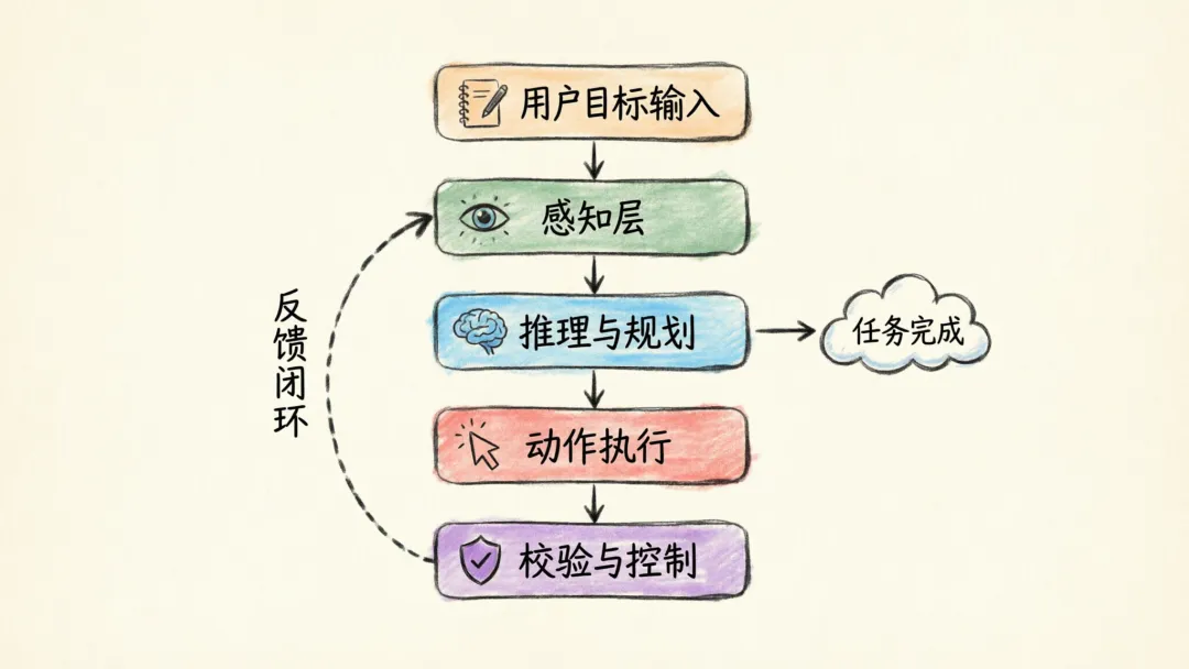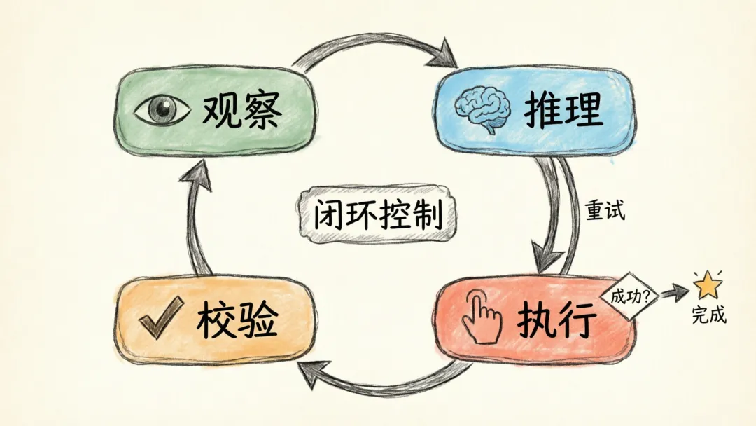 本质上,这是一套 观察 -> 推理 -> 执行 -> 校验 的循环系统。