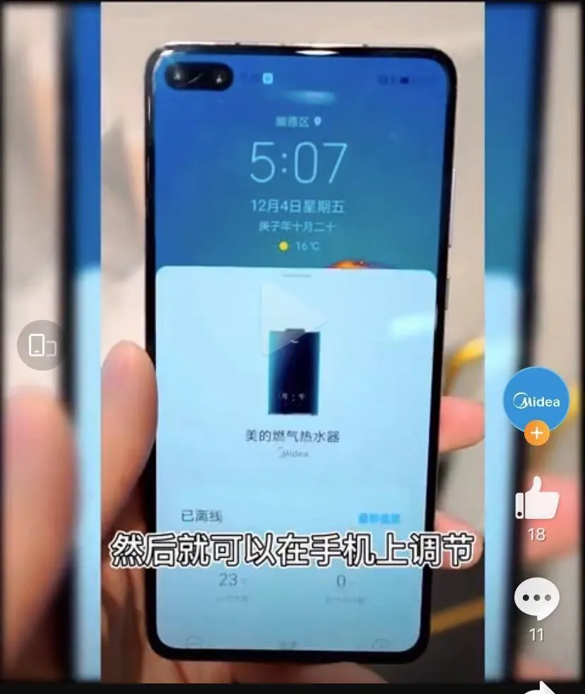 在美的集团昨天发布的搭载鸿蒙OS的美的热水器演示视频可以看到:使用者只要拿手机轻轻碰触热水器,手机上就能弹出相应的操作界面,使用者便可以自由地调节水温和水压了~