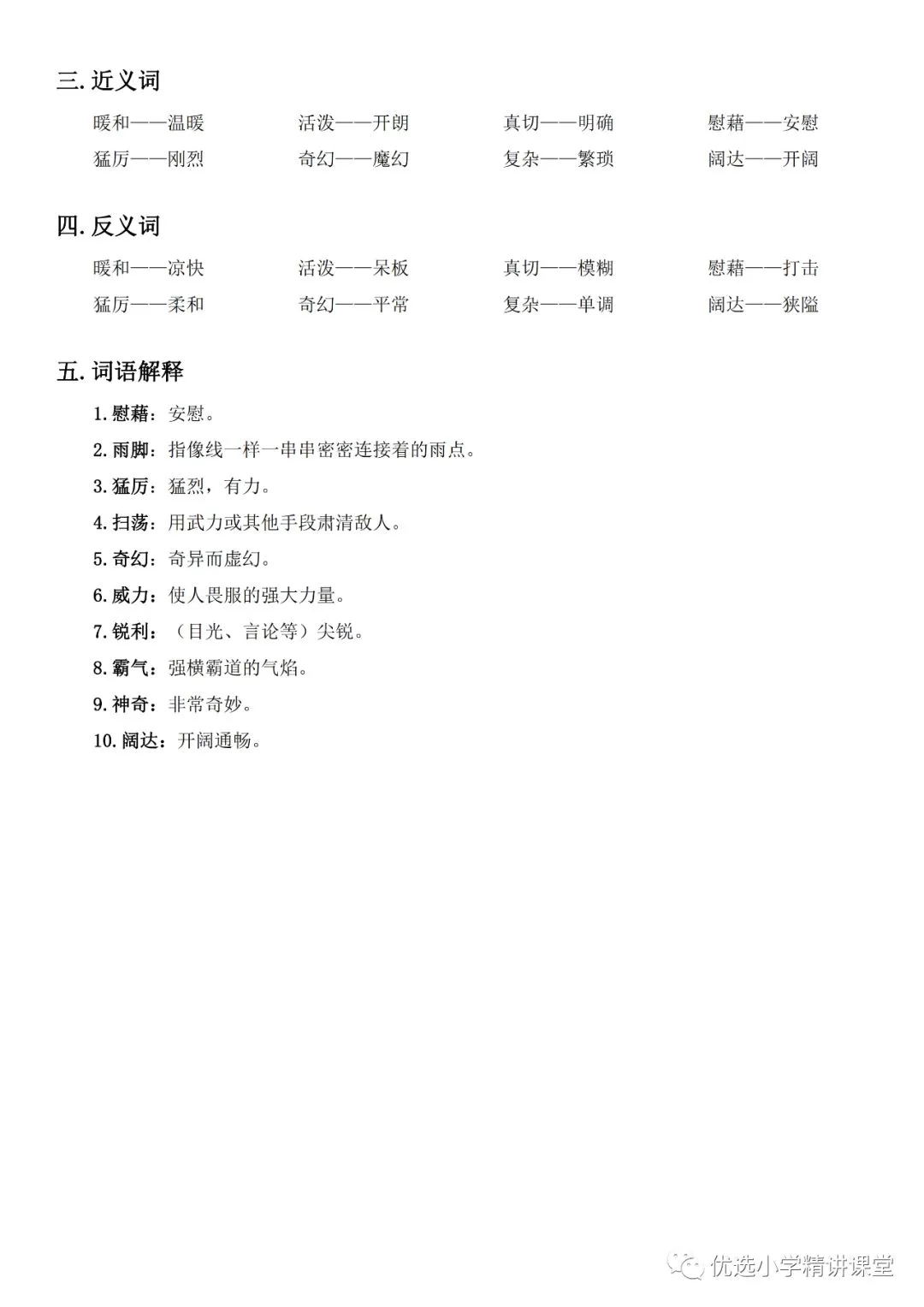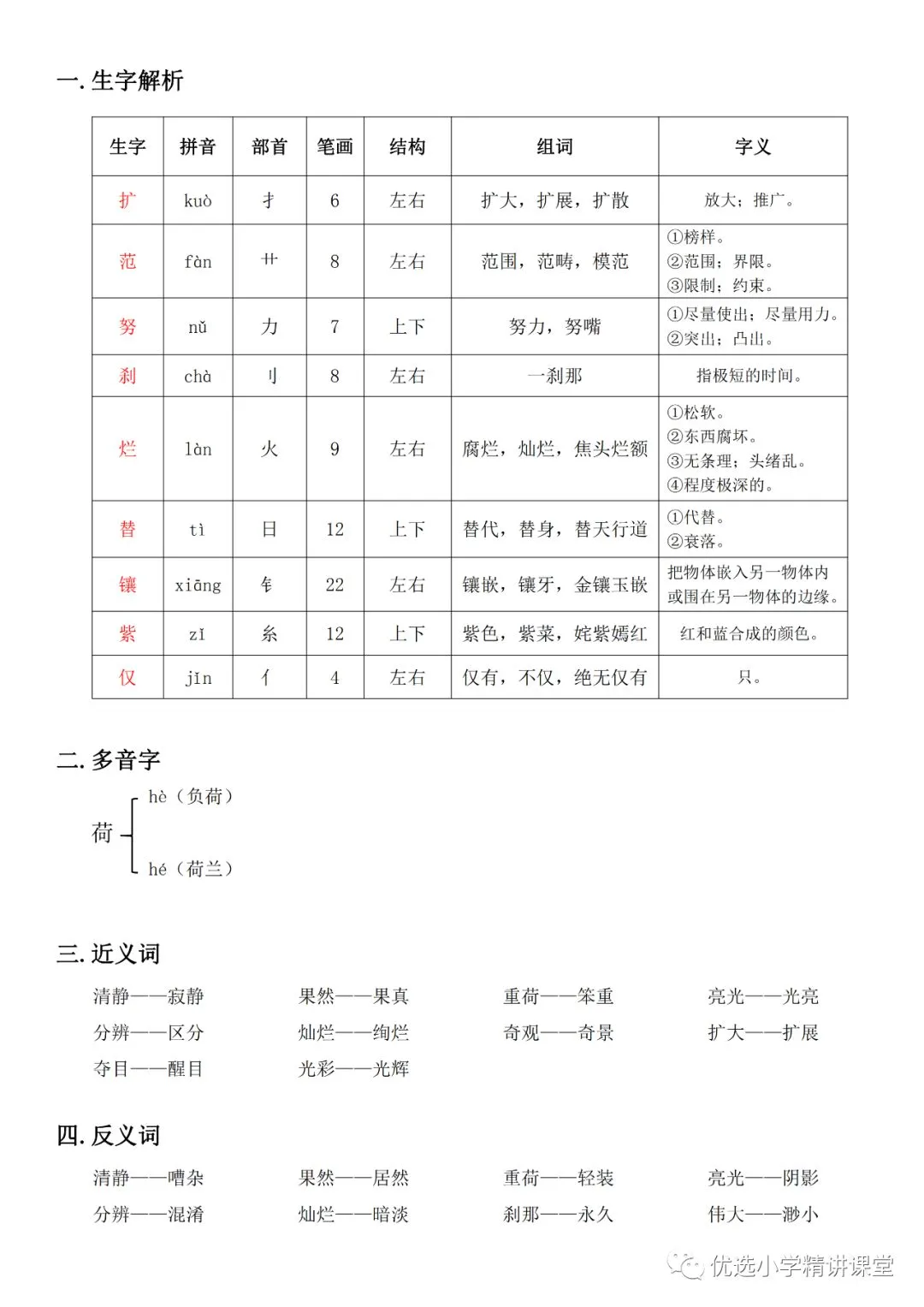 统编版语文四年级(下)课堂笔记丨可下载打印停课不停学,最近很多省份都已确定开学时间,相信校园的美好生活离我们越来越近了。本文总结了四年级段每课知识重点,以课堂笔记形式呈现。这不仅解决了有些孩子不知道如何记笔记的问题,也会让孩子们更能清楚地搞懂每课的重点,一举两得。欢迎大家使用。如需下载打印版文档可在文末下载四下课堂笔记(点击图片可查看高清版)【资料免费下载方式】点击“阅读原文”关注公众号后发送消息“下册综合”即可下载点这里下载资料!