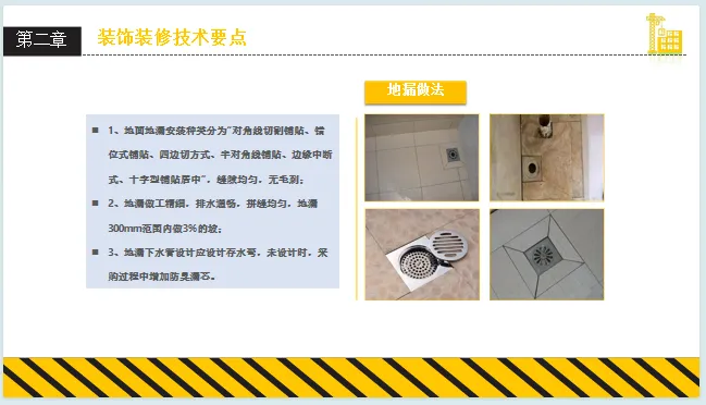 小细节成就大品质,蹲便居中、瓷砖套割无毛刺、地漏排水通畅、踢脚线出墙一致,这些看似不起眼的地方,正是创奖评审的重点关注项!