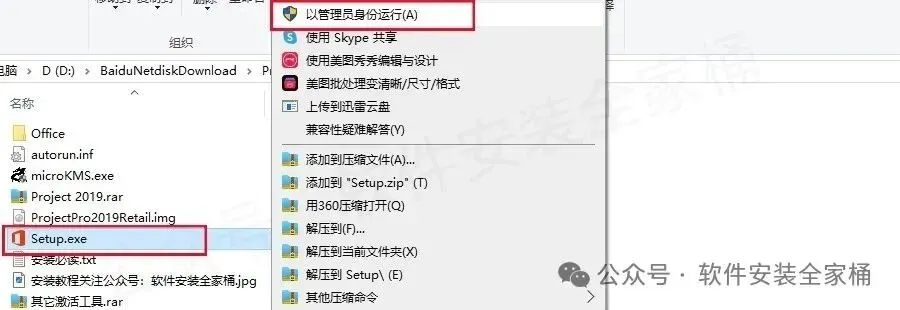 管理员权限:右键setup.exe选择"以管理员身份运行"