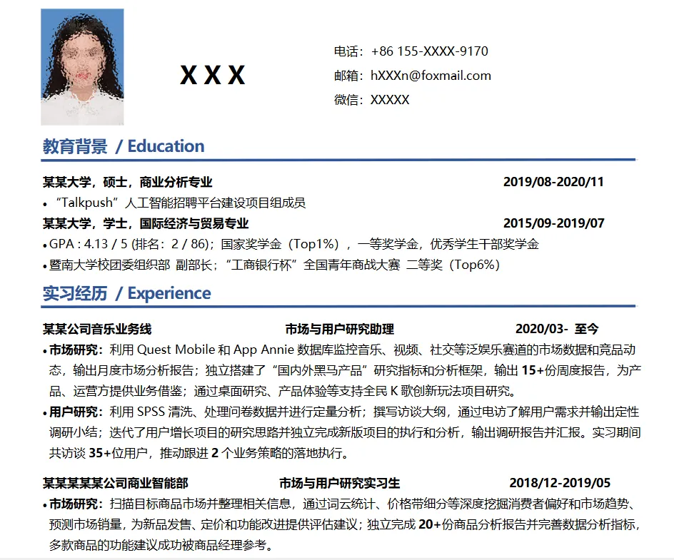 姓名:王xx 联系电话:138xxxx1234 电子邮箱:wangxx@163.com 现居地址:xx 省 xx 市 xx 区