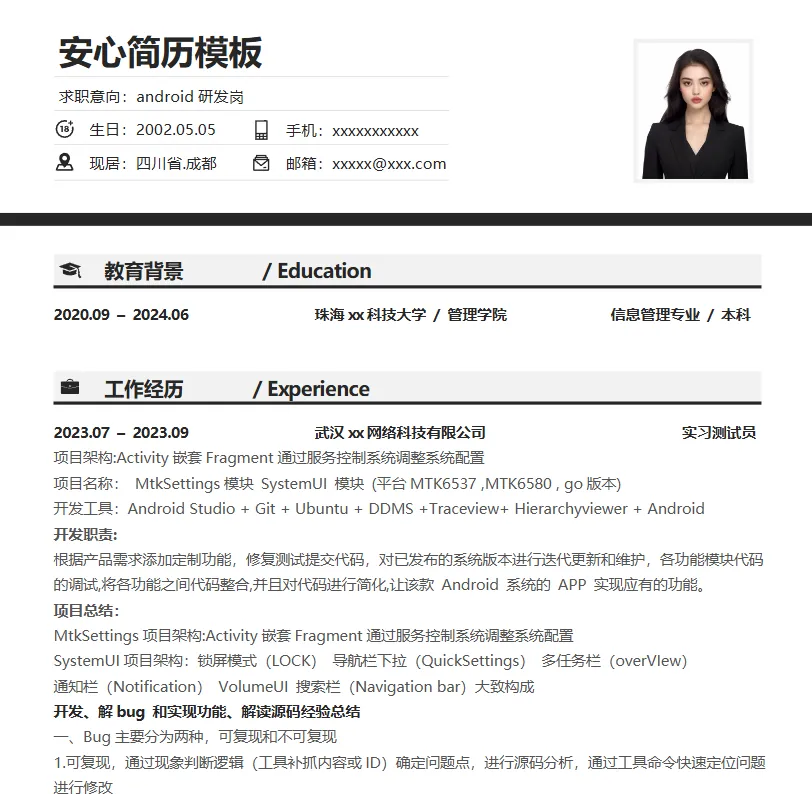 小雅给大家整理了一批最新的个人简历模版,适配应届生、职场跳槽等多种场景,覆盖各类岗位。所有模板均为Word可编辑版本,可直接下载修改,省时省心。模板模块完整、版式简洁,符合企业招聘审美,助力您打造优质简历。祝各位求职顺利,前程似锦!