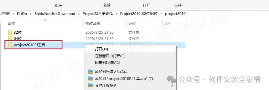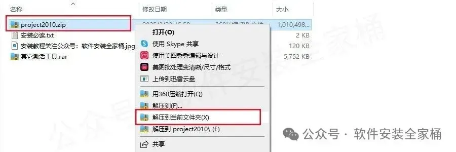 1.打开下载的project2010安装包,鼠标右击软件压缩包,选择【解压到当前文件夹】。