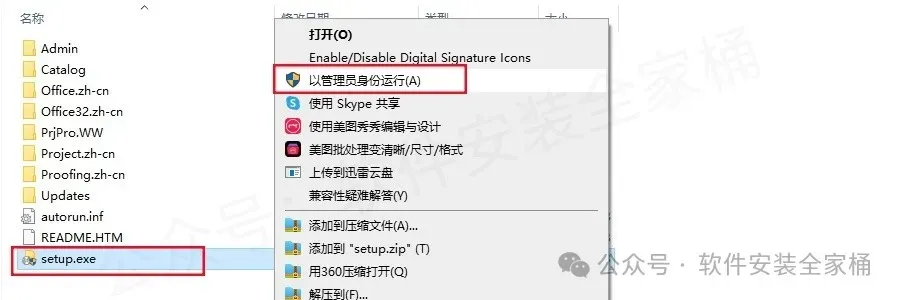 管理员权限:右键setup.exe选择"以管理员身份运行"