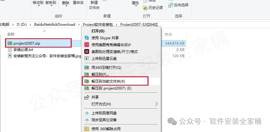 解压操作:右键选择"解压到当前文件夹",避免路径含中文