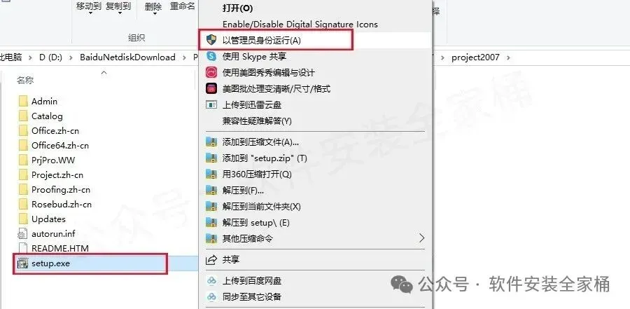 管理员权限:右键setup.exe选择"以管理员身份运行"