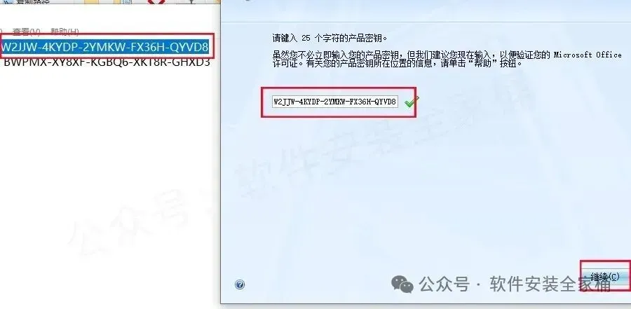 或者BWPMX-XY8XF-KGBQ6-XKT8R-GHXD3,输入好后点击【继续】。