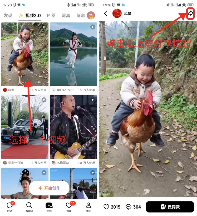 第一步:打开豆包APP的视频,选择需要下载的视频,点击右上角的分享按钮;