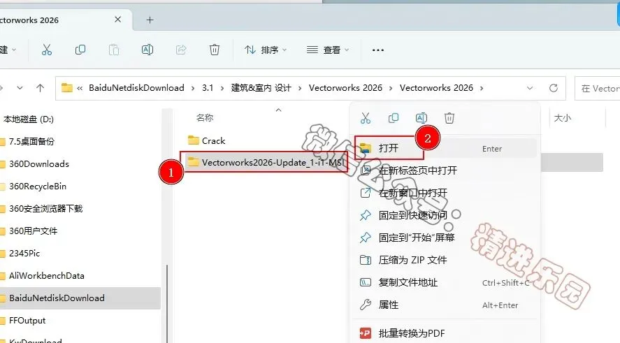 1、下载Vectorworks 2026软件安装包到电脑上,右键选择【解压到当前文件夹】2、找到【Vectorworks2026-Update...】文件夹,右键【打开】它
