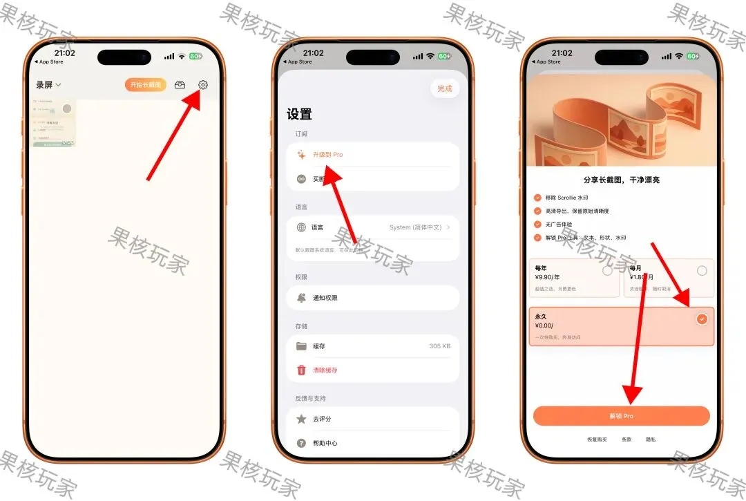 iOS 永久版,¥0.00 解锁终身会员,非常实用!大家好呀,今天分享iOS端的一款滚动截屏的长截图工具~免登录无广告,界面简洁,智能拼接无缝长截图,录屏 / 截图秒变干净长图,内置涂鸦、马赛克、水印等实用编辑功能。 已关注 关注 重播 分享 赞 视频详情 *视频来自AppStore*截止发稿前,永久VIP会员限时免费领取中,有需要的话速收,数量有限,活动随时结束 ~可以不用,但不能没有!!成功领取的朋友点个赞 ▌解锁方式1,打开软件,进入主界面后,点击右上角按钮进入设置2,点击升级到 Pro 进入内购3,内购界面,选择永久 ¥0.00 后,点击底部按钮进行购买▌应用获取 在本公众号后台私信回复:长截图,即可~注意事项:一次解锁,永久免费使用,没有订阅陷阱。如果不小心删除APP,重新下载-恢复购买即可!购买和输入密码时,不显示金额就是免费,显示金额就不要买了!限免是有时间限制的,手慢无!