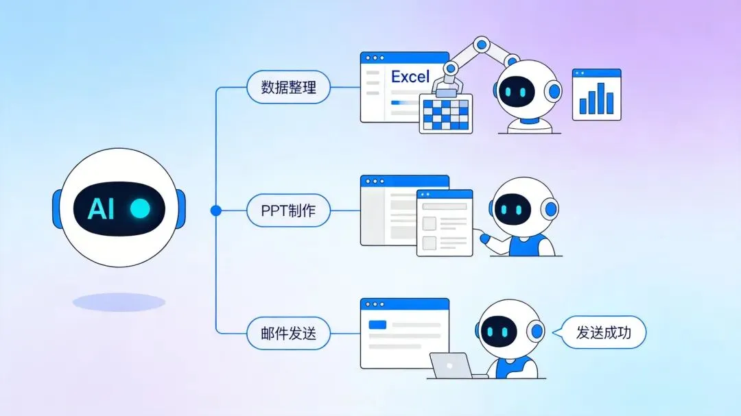 日常工作常需要查资料、写内容、做表格、发邮件,多步骤来回切换软件,碎片化耗时多。