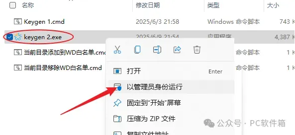 10.鼠标右击【Keygen 2】选择【以管理员身份运行】。