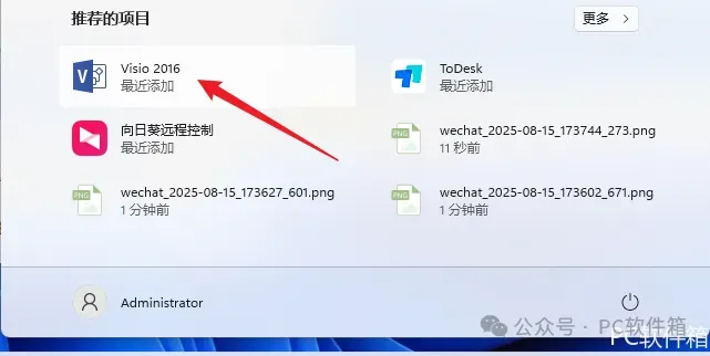 14.点击任务栏中的【开始图标】,点击【Visio2016】启动软件。