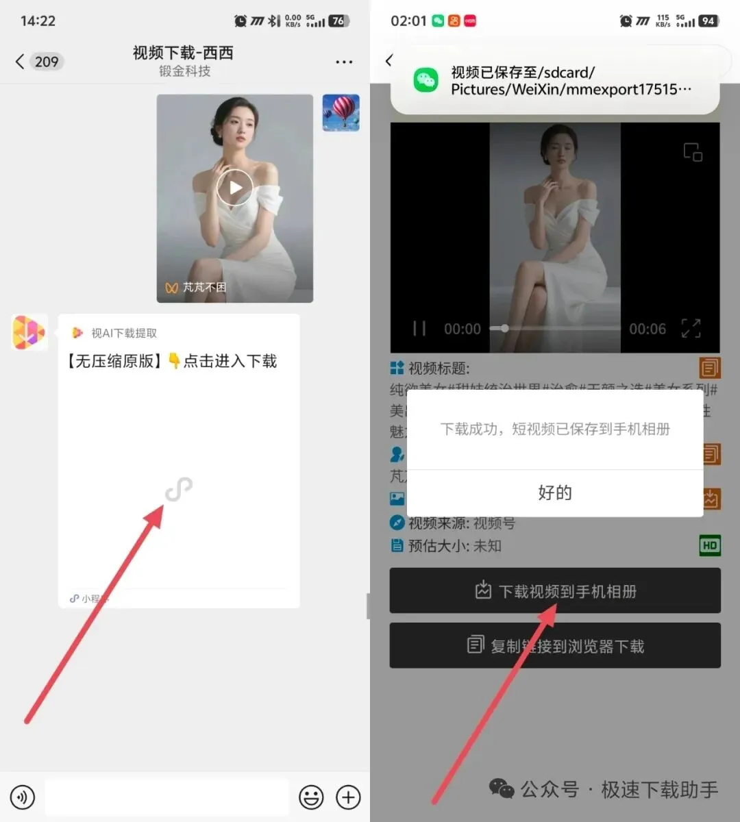 ② 视频下载客服机器人会自动解析并返回下载小程序